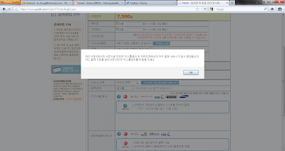 매우 힘들고 귀찮게 여러가지 정보를 입력하고, 회원등록을 마친 후 나는 드디어 결제를 하려고 하는데 다음과 같은 창이 떴다.